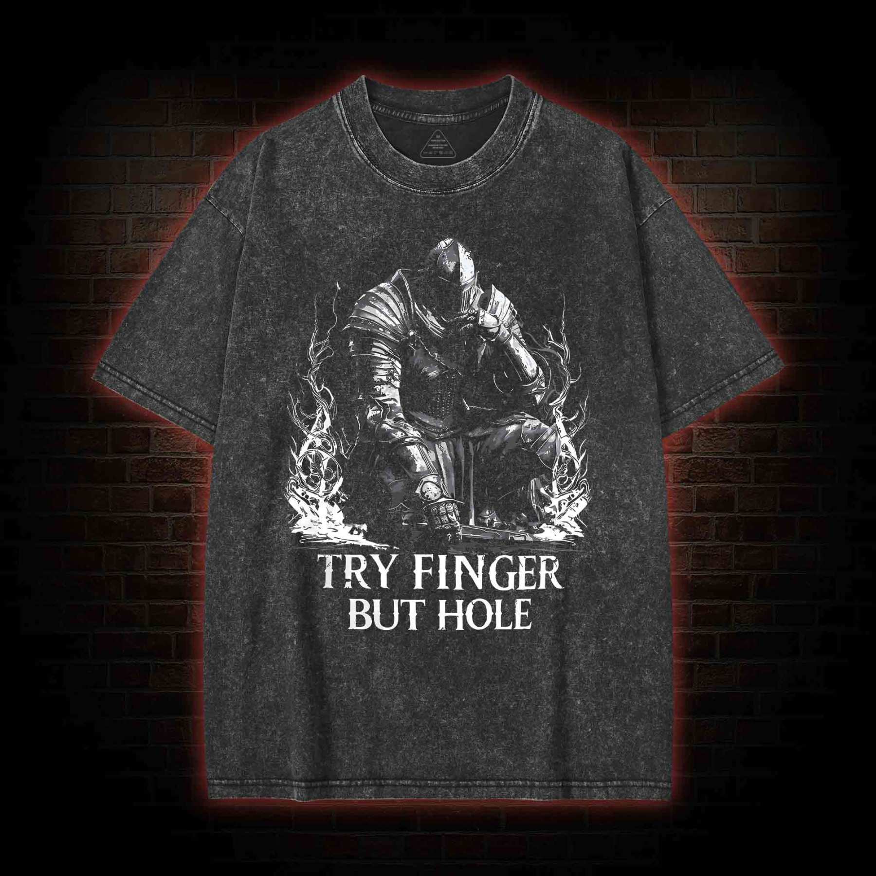 Try Finger but Hole Washed T-shirt Try Finger but Hole Washed T-shirt