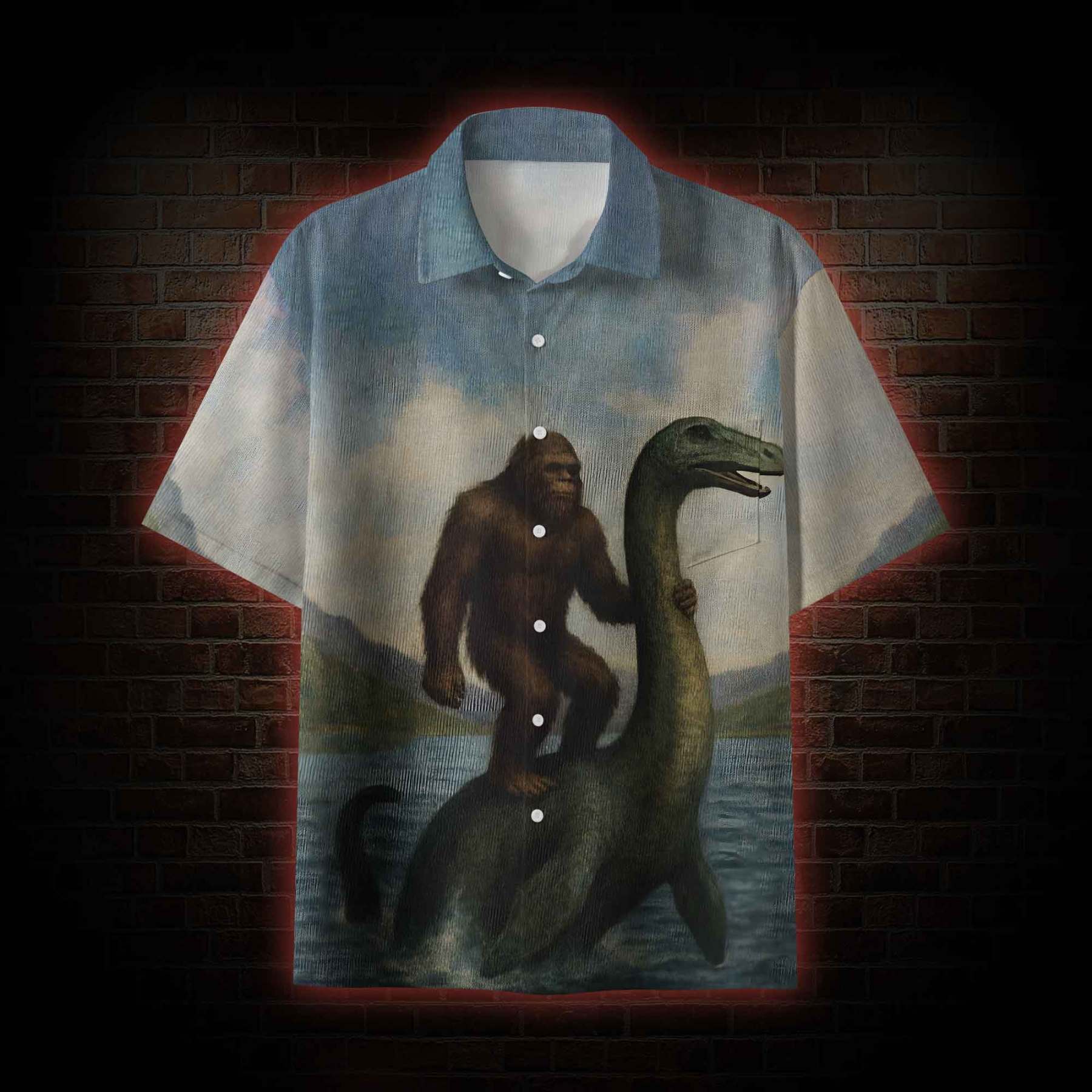 Bigfoot Riding Loch Ness Monster Button-up Shirt Bigfoot Riding Loch Ness Monster Button-up Shirt