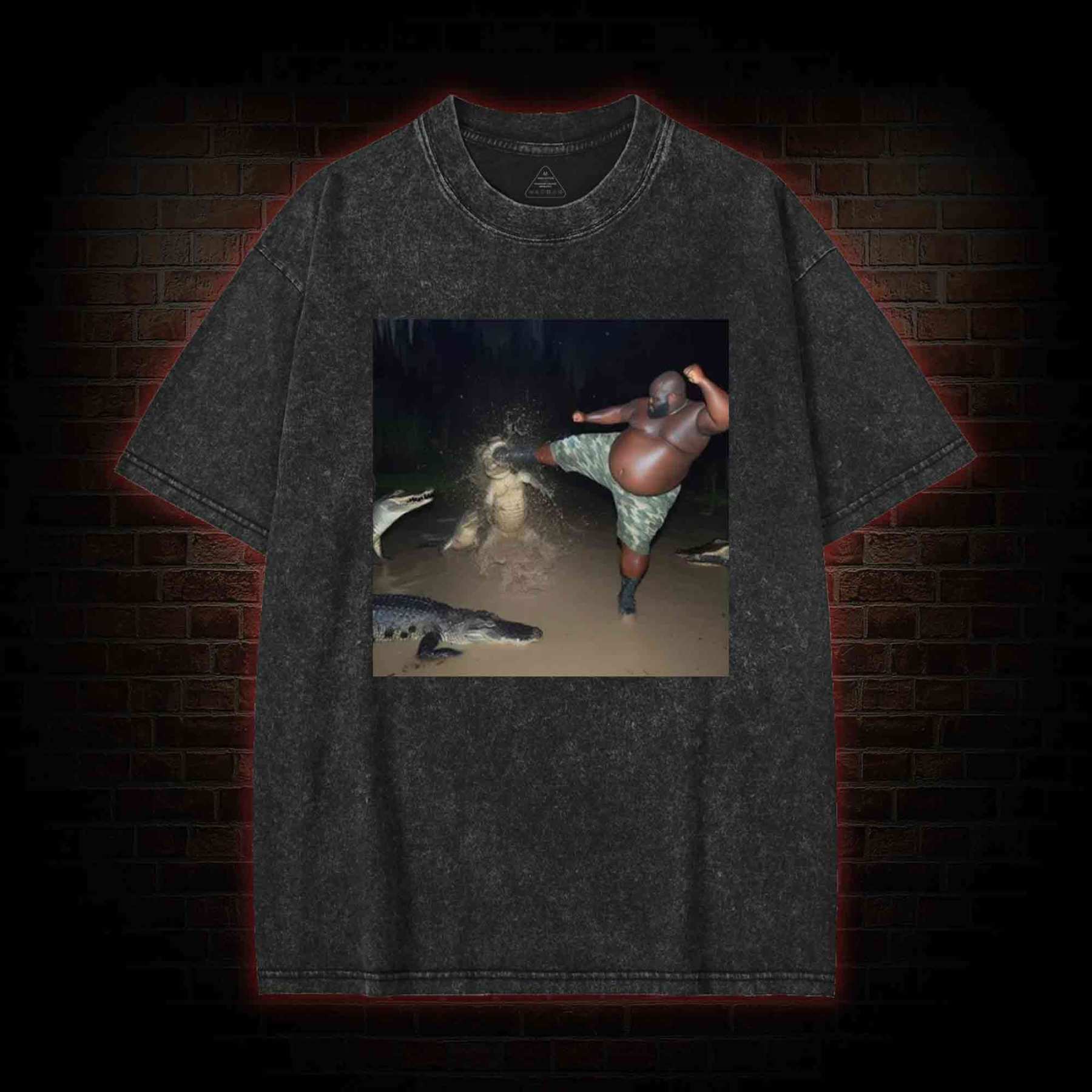 Black Guy Kick Alligator in Swamp Washed T-shirt