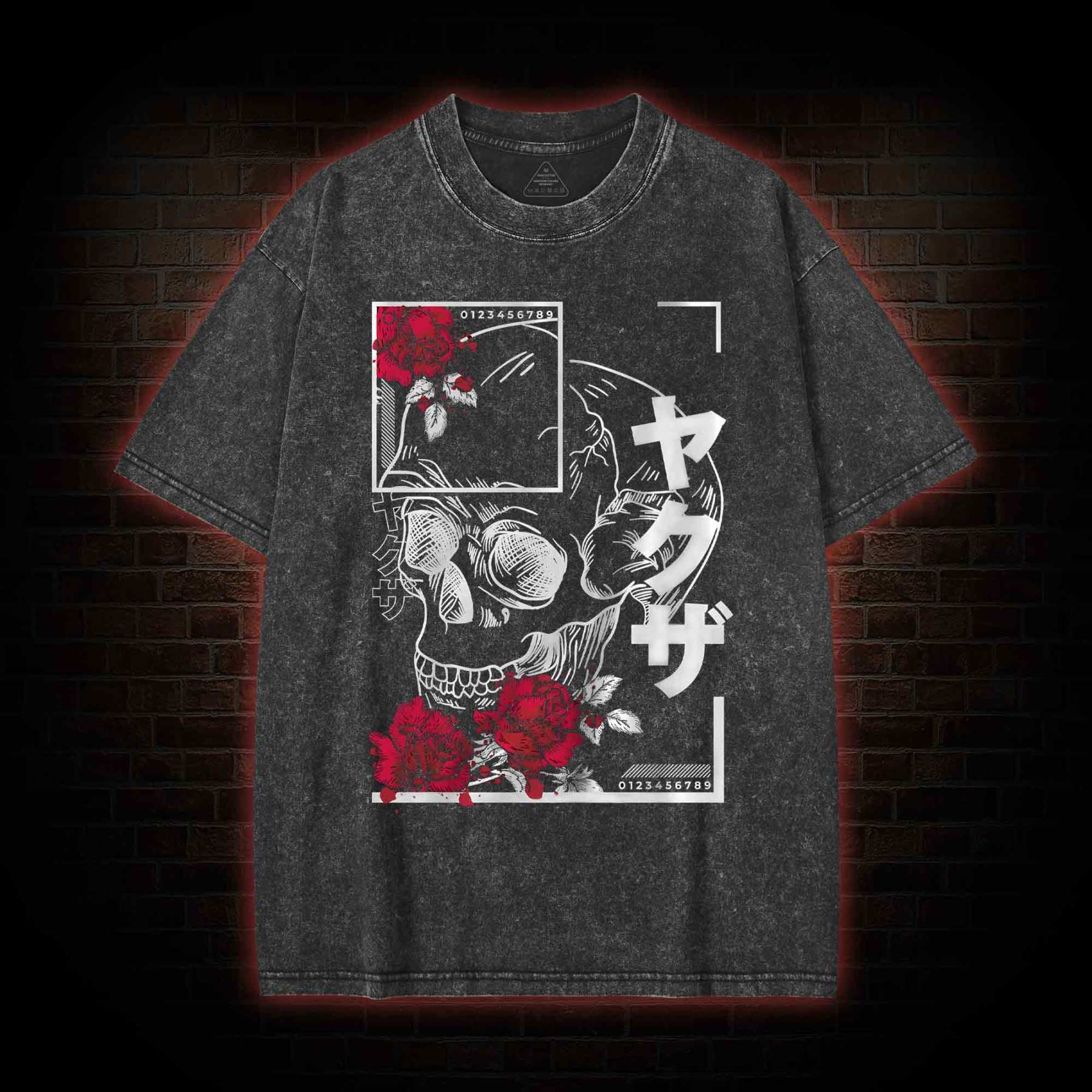 Skull Red Roses Washed T-shirt
