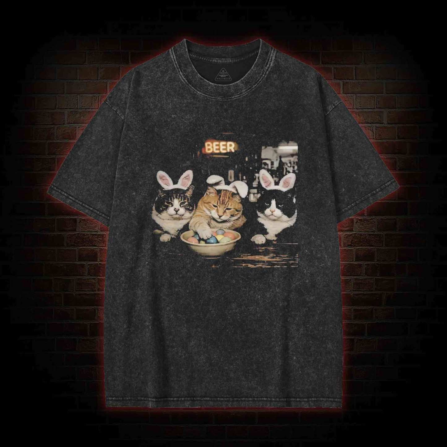 Easter Bunny Cats Bar Washed T-shirt 2489 Washed T-shirt 2489 Washed T-shirt
