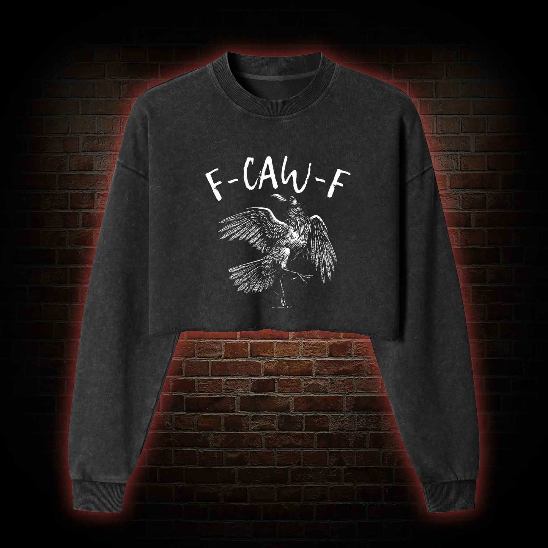 F-caw-f Funny Washed Cropped Sweatshirts