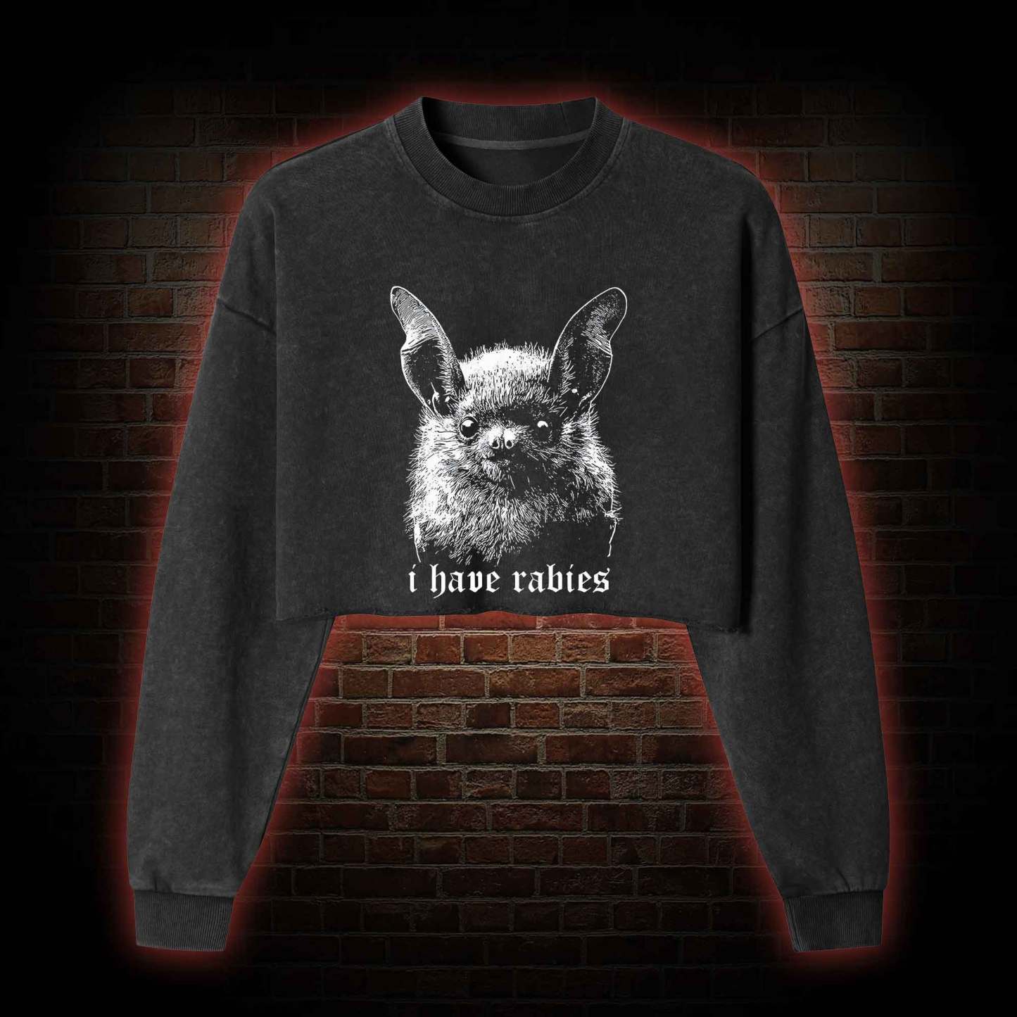 I Have Rabies Bat Washed Cropped Sweatshirts