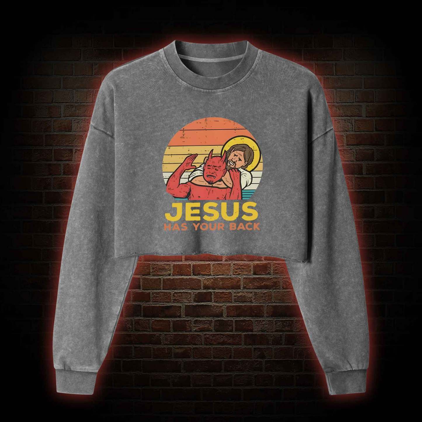 Jesus has Your Back Washed Cropped Sweatshirts