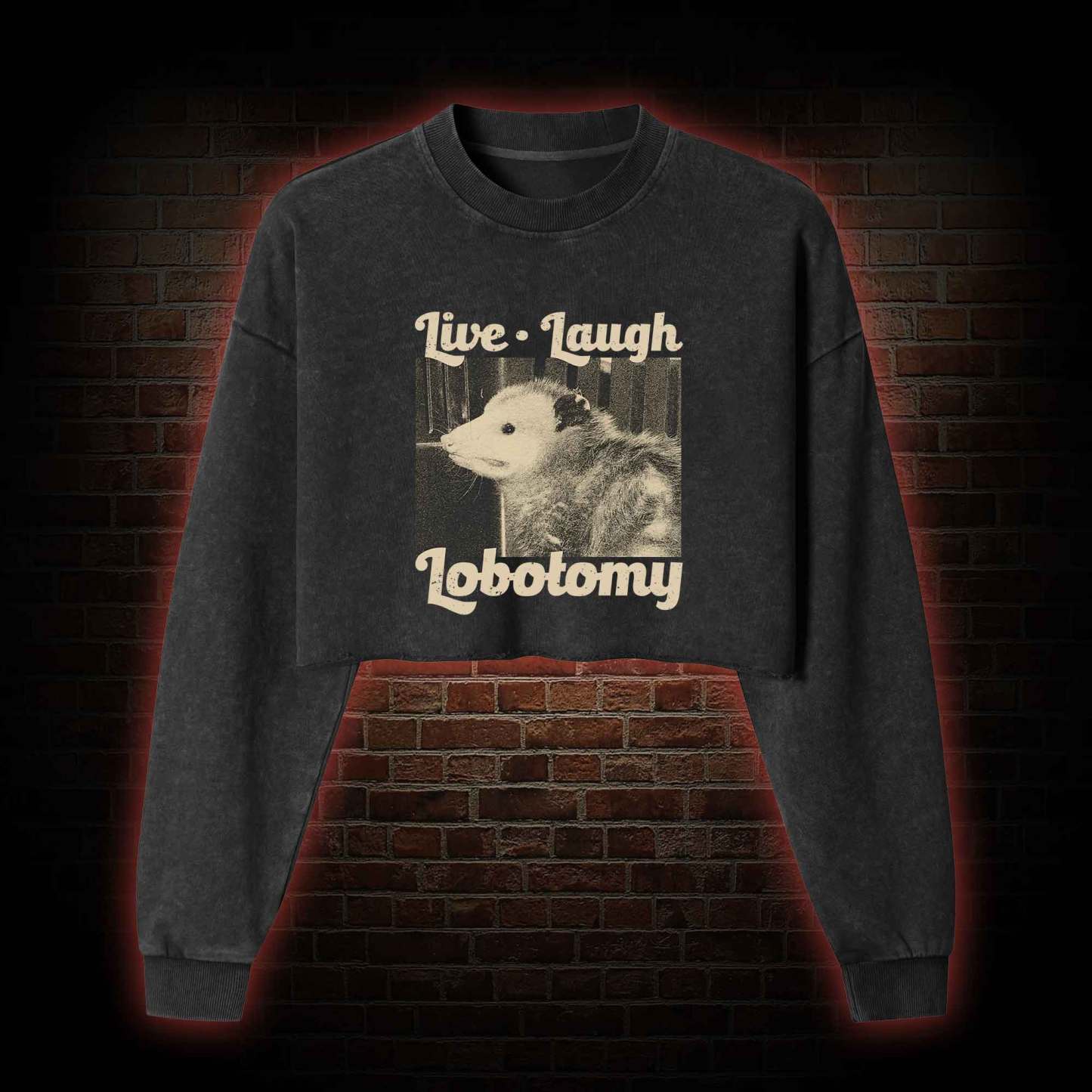 Live Laugh Lobotomy Washed Cropped Sweatshirts