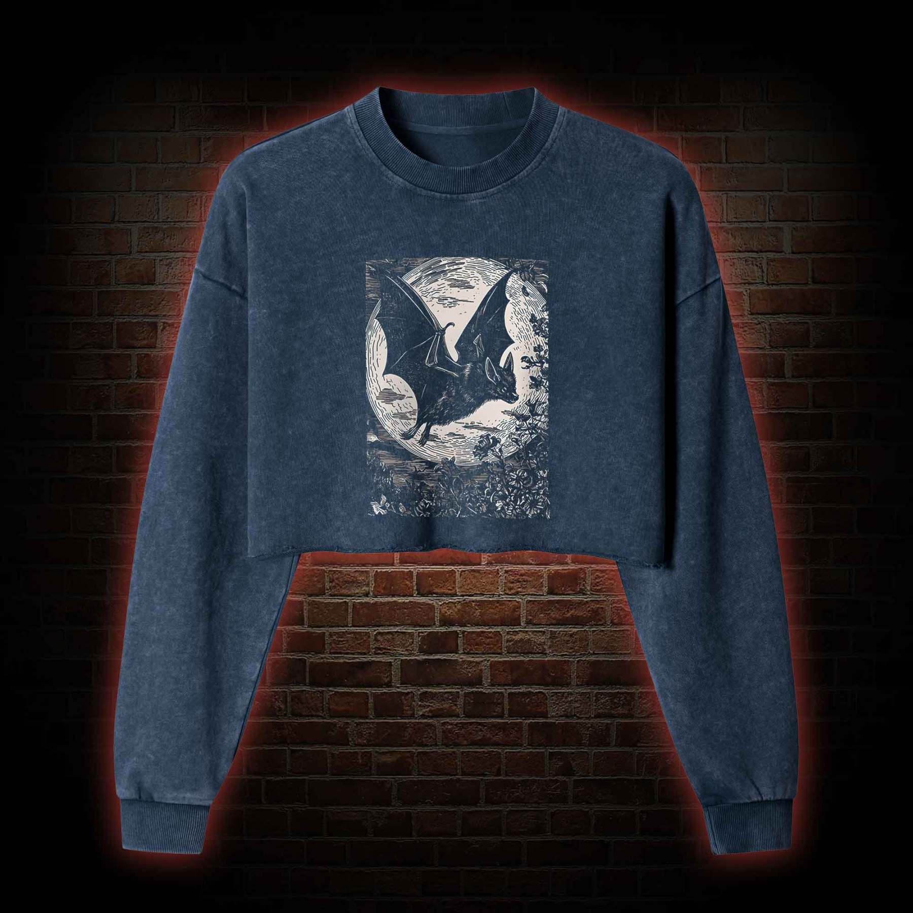 Medieval Bat Washed Cropped Sweatshirts