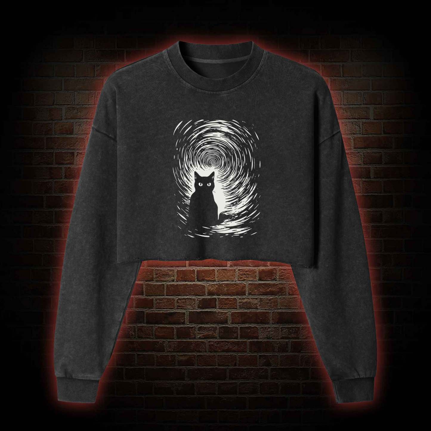 Retro Black Cat Washed Cropped Sweatshirts