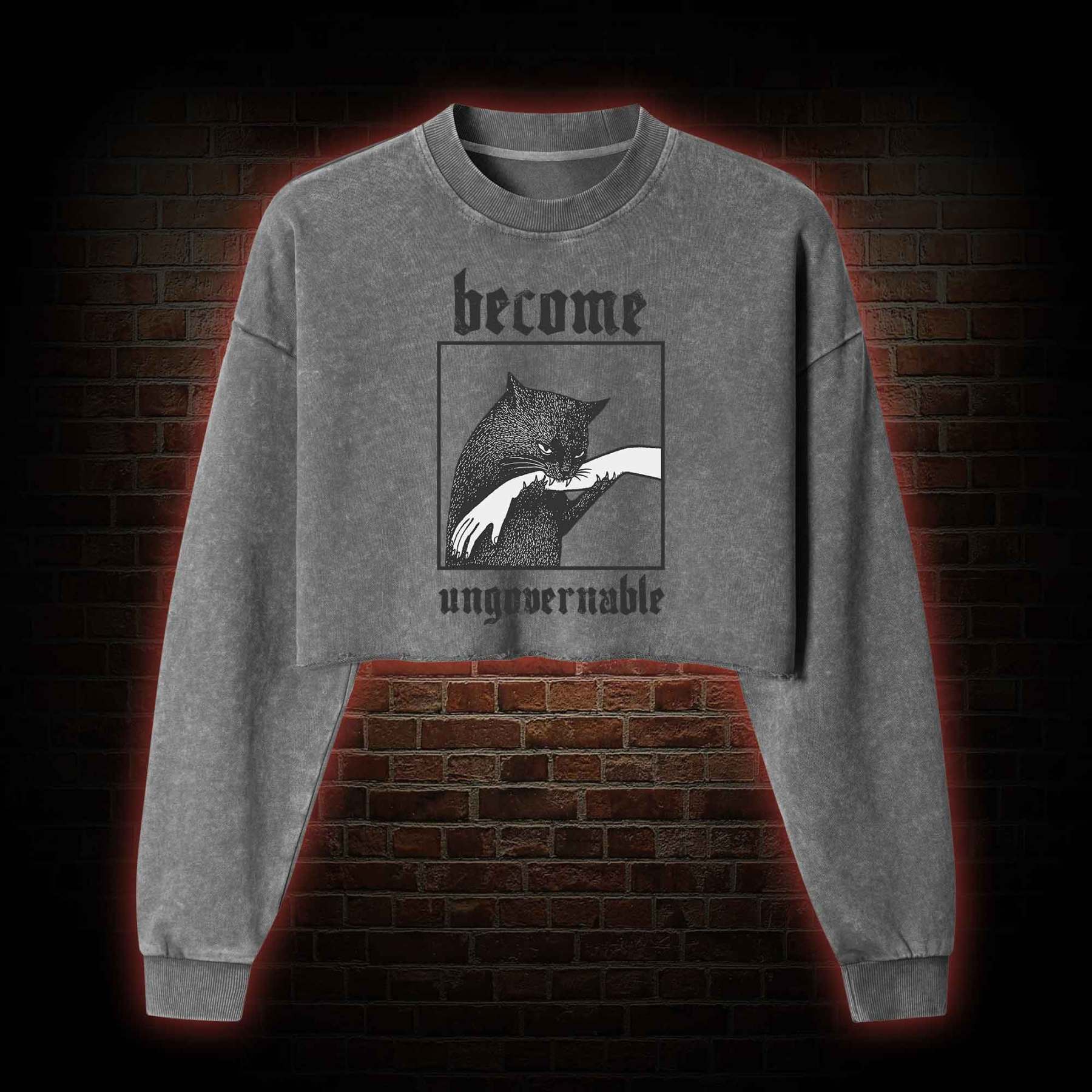 Silly Cats Washed Cropped Sweatshirts