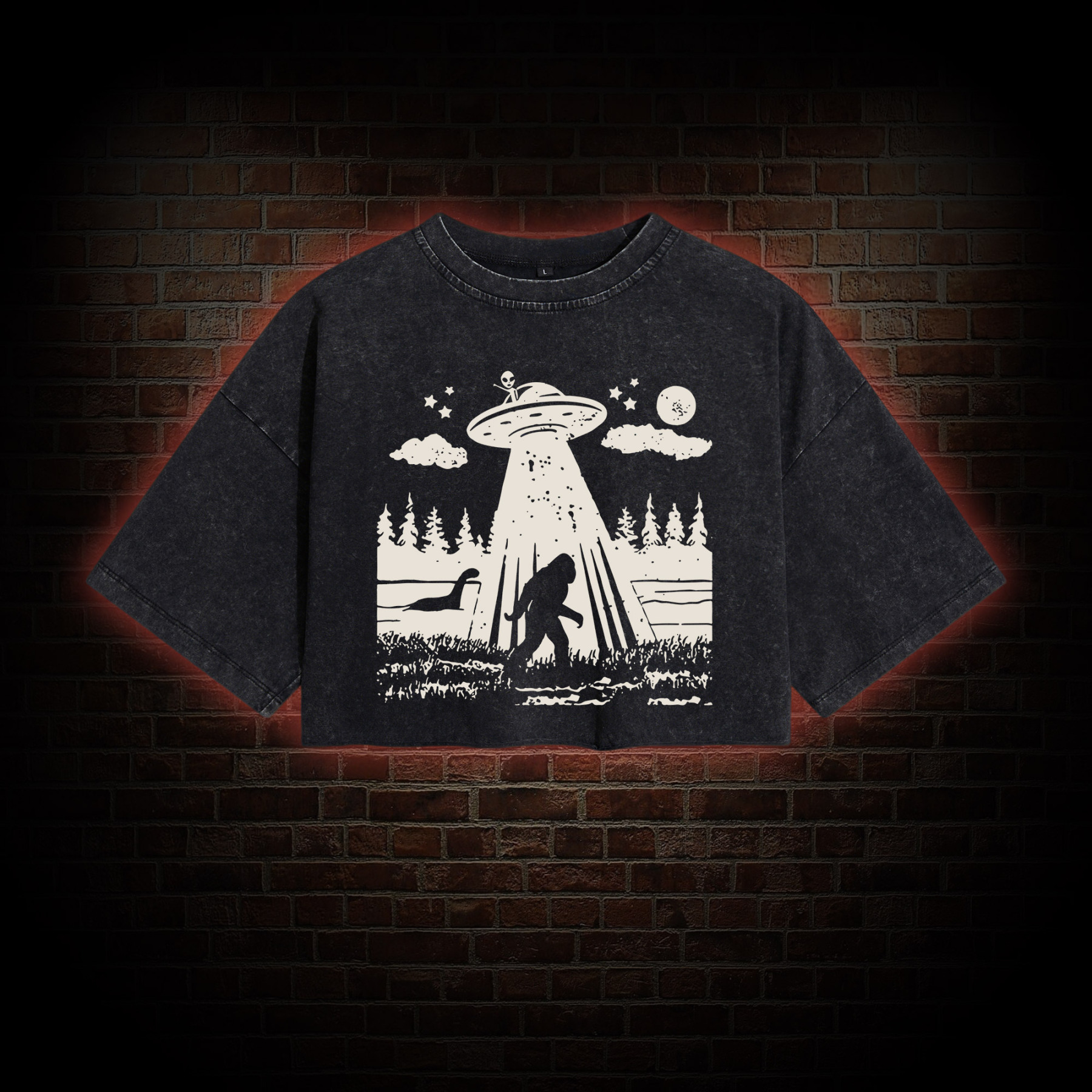 Bigfoot Sasquatch Alien UFO Loch Ness Monster Washed Cropped T-shirts