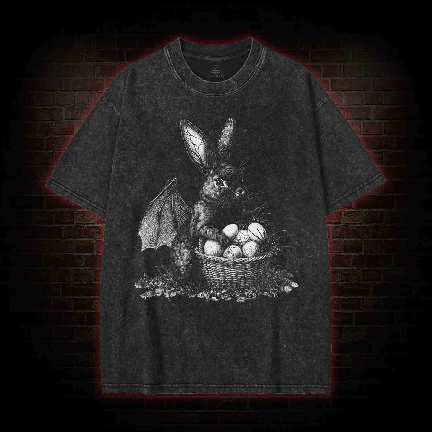Rabbit with Spiders Washed T-shirt 2489 Washed T-shirt 2489 Washed T-shirt